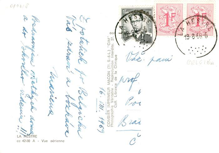 73874925 carte postale La Hestre Belgie Fliegeraufnahme postalisch gelaufen Erhaltung siehe scans [WerneD78] KatCode: 11070052006748