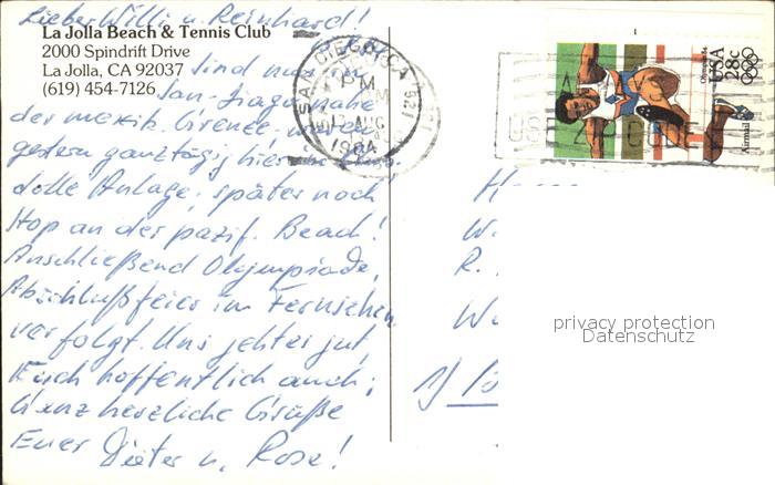 72053989 old postcard La Jolla Beach Tennis Club aerial view postalisch gelaufen Erhaltung siehe scans KatCode: 14140050000000