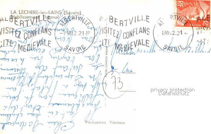 12754723 carte postale La Lechere les Bains Etablissement Thermal postalisch gelaufen Erhaltung siehe scans [FriedD77] KatCode: 11170073173181