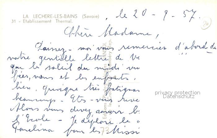 13486781 La Lechere les Bains Etablissement Thermal postalisch nicht gelaufen Erhaltung siehe scans [FriedD77] KatCode: 11170073173181