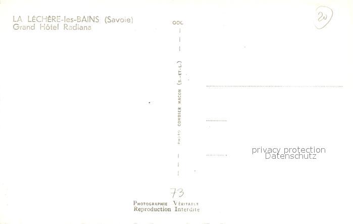 13486780 La Lechere les Bains Grand Hotel Radiana postalisch nicht gelaufen Erhaltung siehe scans [FriedD77] KatCode: 11170073173181