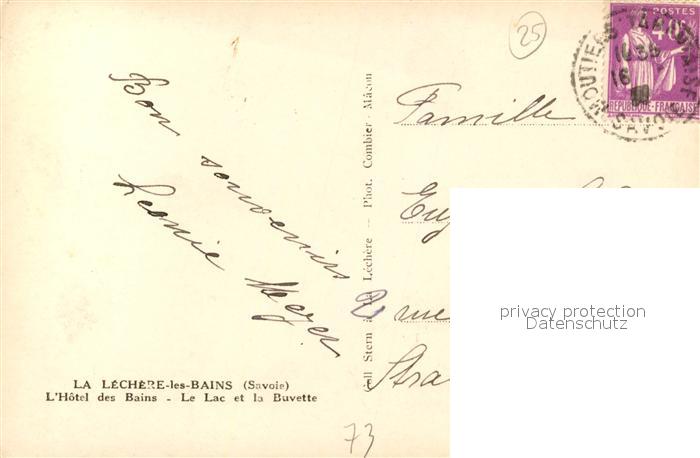 13486797 carte postale La Lechere les Bains Hotel des Bains Lac et la Buvette postalisch gelaufen Erhaltung siehe scans [FriedD77] KatCode: 11170073173181