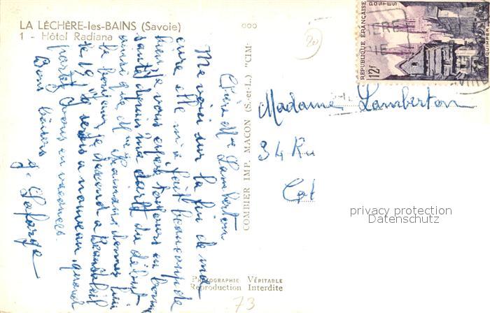 13486788 carte postale La Lechere les Bains Hotel Radiana Alpes postalisch gelaufen Erhaltung siehe scans [FriedD77] KatCode: 11170073173181