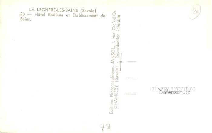 13486779 La Lechere les Bains Hotel Radiana Etablissement de Bains postalisch nicht gelaufen Erhaltung siehe scans [FriedD77] KatCode: 11170073173181