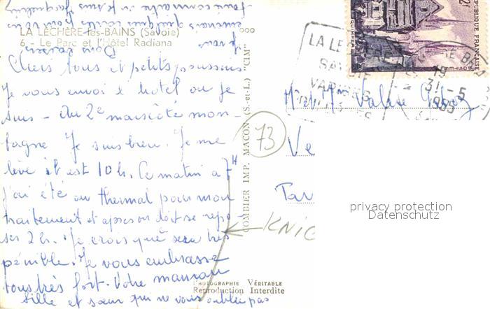 12754722 carte postale La Lechere les Bains Parc Hotel Radiana postalisch gelaufen Erhaltung siehe scans [FriedD77] KatCode: 11170073173181