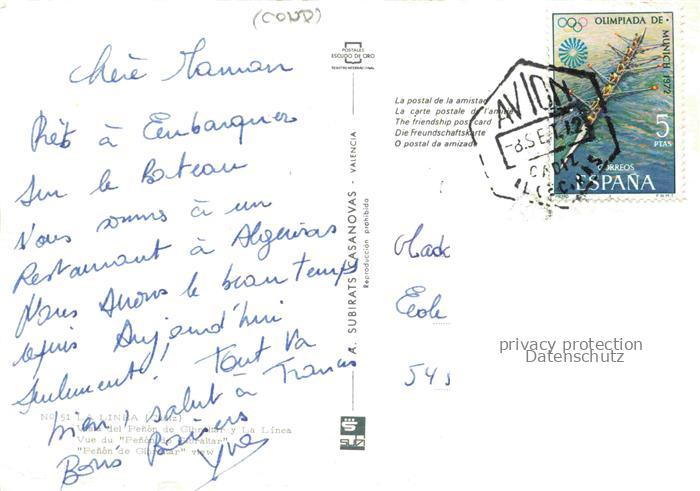 74035188 old postcard La Linea Cadiz Andalucia ES Vista del Penon de Gibraltar y la Linea vista aérea postalisch gelaufen Fliegeraufnahme Erhaltung siehe scans [FriedD77] KatCode: 11510