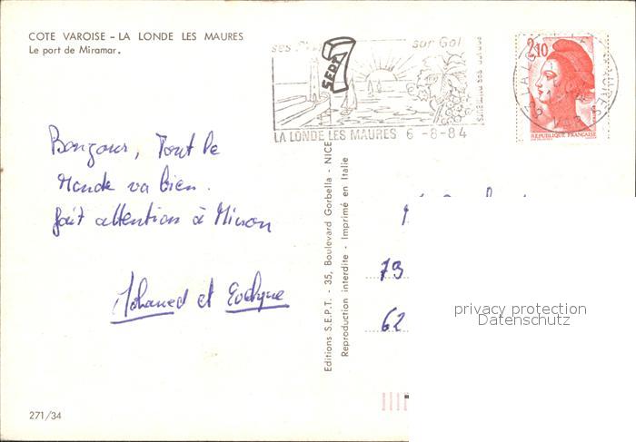 12263214 carte postale La Londe-les-Maures Port de Miramar Bateaux postalisch gelaufen Erhaltung siehe scans KatCode: 11170083283071