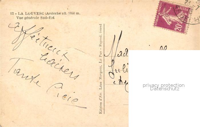 13586033 La Louvesc Vue generale Sud Est postalisch gelaufen Erhaltung siehe scans [WerneD78] carte postale Wern Katcode 11170007307128