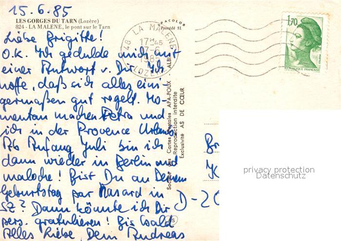carte postale La Malene Le Pont sur le Tarn postalisch gelaufen Erhaltung siehe scans [WerneD78]