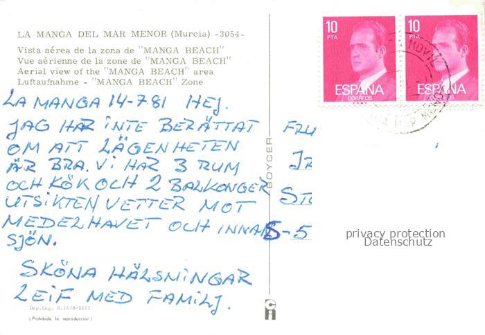 74148763 old postcard La Manga del Mar Menor MURCIA ES Vista aérea de la zona de Manga Beach postalisch gelaufen Fliegeraufnahme Erhaltung siehe scans [FriedD77] KatCode: 11510