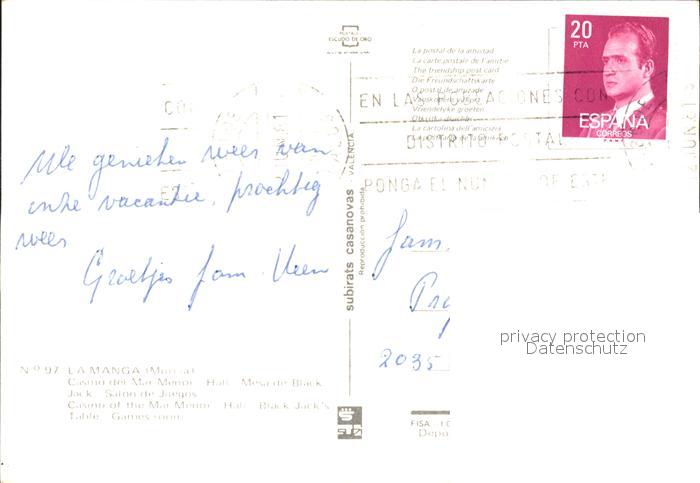 old postcard La Manga Murcia Casiono del Mar Menor postalisch gelaufen Erhaltung siehe scans