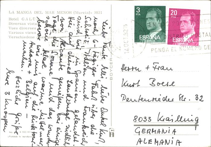 old postcard La Manga Murcia Hotel Galua Swimming Pool Playa postalisch gelaufen Erhaltung siehe scans