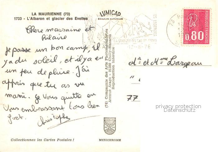 13786335 La Maurienne 73 Savoie Albaron et glacier des Evettes postalisch gelaufen Erhaltung siehe scans [WerneD78] carte postale Wern Katcode 11170073373083
