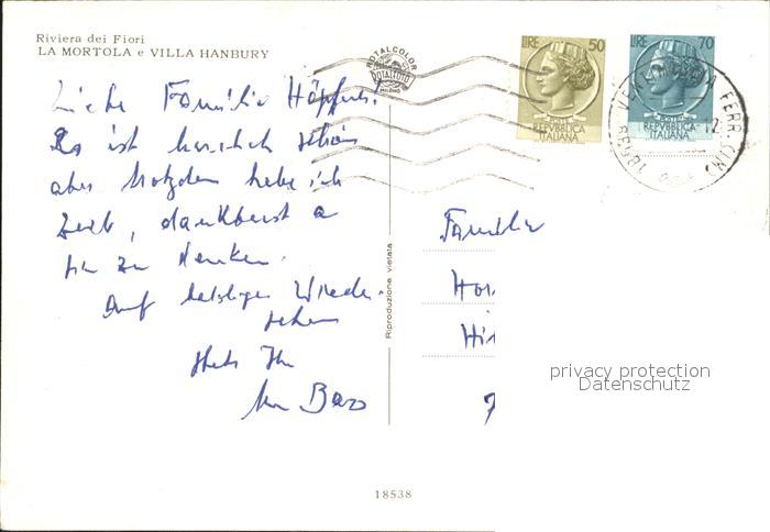 old postcard La Mortola Villa Hanbury Panorama Riviera dei Fiori postalisch gelaufen Erhaltung siehe scans
