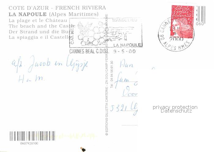 12687967 carte postale La Napoule Plage La plage et le Chateau postalisch gelaufen Erhaltung siehe scans [FriedD77] KatCode: 11170006106079