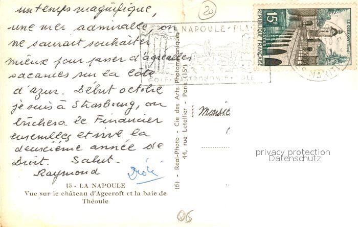 13493396 carte postale La Napoule Plage Vue sur le Chateau d Ageeroft et Baie de Théoule Côte d’Azur postalisch gelaufen Erhaltung siehe scans [FriedD77] KatCode: 11170006106079