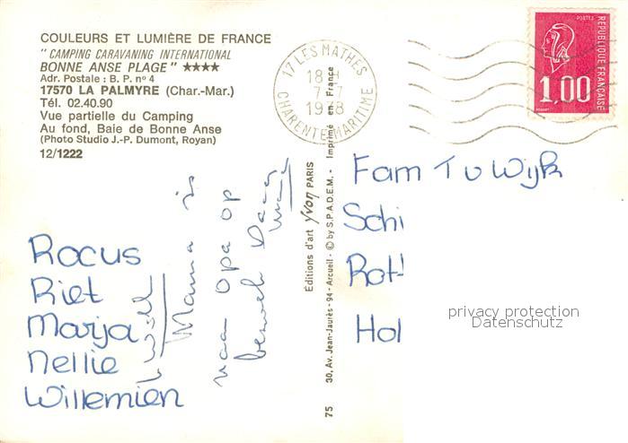 13745321 La Palmyre 17 Vue aerienne partielle du Camping Au fond Baie de Bonne Anse postalisch gelaufen Erhaltung siehe scans [WerneD78] carte postale Wern Katcode 11170017217225