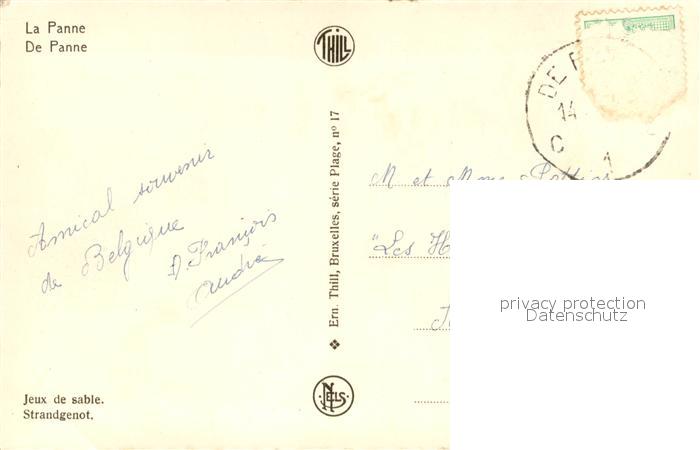 13679647 La Panne Belgium Jeux de sable postalisch gelaufen Erhaltung siehe scans [WerneD78] alte Postkarte Wern Katcode 11070038000362