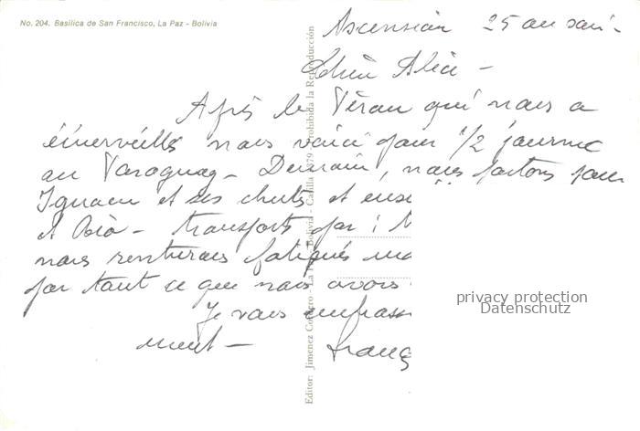 74029280 LA PAZ Bolivia Basilica de San Francisco postalisch nicht gelaufen Erhaltung siehe scans [FriedD77] KatCode: 17030