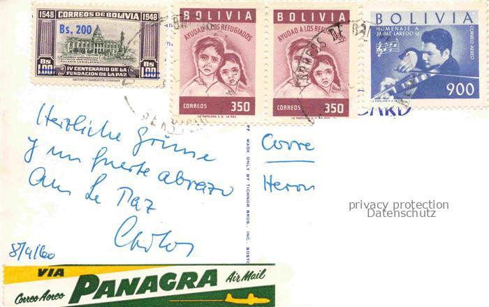 74128475 old postcard LA PAZ Bolivia Stadtpanorama bei Nacht im Mondschein postalisch gelaufen Erhaltung siehe scans [FriedD77] KatCode: 17030
