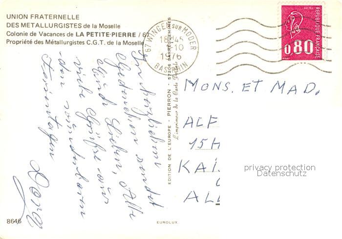 13357201 carte postale La Petite-Pierre Colonie des Vacances postalisch gelaufen Erhaltung siehe scans [FriedD77] KatCode: 11170067467371