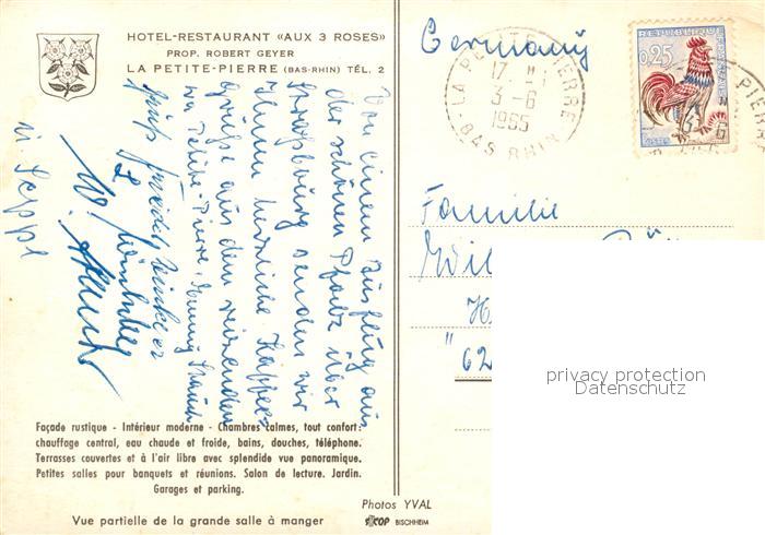 13024587 carte postale La Petite-Pierre Hotel Restaurant Aux 3 Roses postalisch gelaufen Erhaltung siehe scans [KathaD81] KatCode: 11170067467371