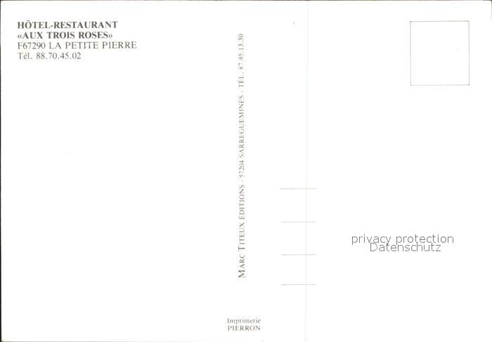 11905503 La Petite-Pierre Hotel Restaurant Aux Trois Roses postalisch nicht gelaufen Erhaltung siehe scans KatCode: 11170067467371