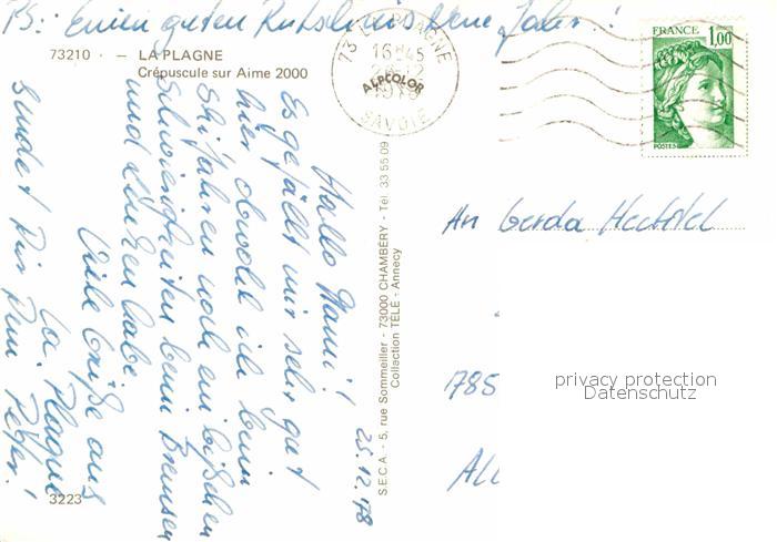 12858380 carte postale La Plagne Crepscule sur Aime 2000 postalisch gelaufen Erhaltung siehe scans [AndreD76] KatCode: 11170073173006