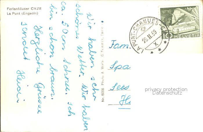 12031706 alte Postkarte La Punt-Chamues-ch Ferienhaeuser CVJM Engadin postalisch gelaufen Erhaltung siehe scans KatCode: 11470100335216