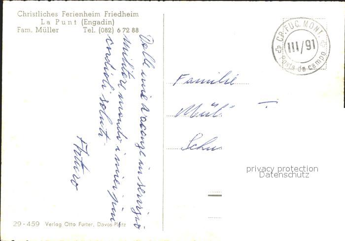 11651433 alte Postkarte La Punt-Chamues-ch Ferienheim Friedheim postalisch gelaufen Feldpost Erhaltung siehe scans KatCode: 11470100335216