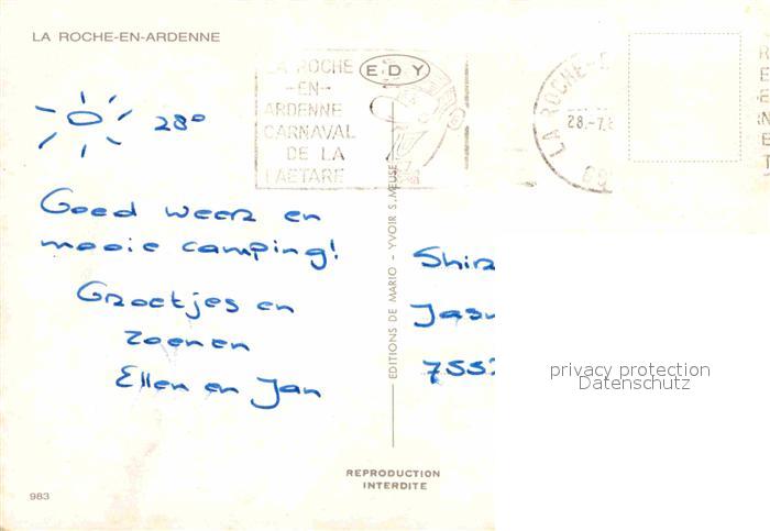 72913436 carte postale La Roche-en-Ardenne Blick ueber die Ourthe zur Kirche Burgruine postalisch gelaufen Erhaltung siehe scans [FriedD77] KatCode: 11070083002072