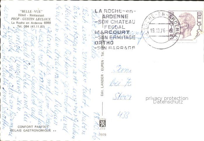 72495827 carte postale La Roche-en-Ardenne Hotel Belle Vue Gast und Aufenthaltsraum Konferenzzimmer postalisch gelaufen Erhaltung siehe scans KatCode: 11070083002072