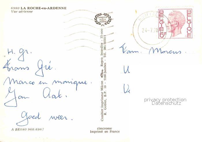 72780913 carte postale La Roche-en-Ardenne Vue aerienne postalisch gelaufen Erhaltung siehe scans [FriedD77] KatCode: 11070083002072