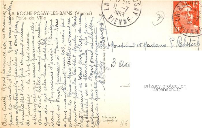 13485845 carte postale La Roche-Posay La Porte de Ville postalisch gelaufen Erhaltung siehe scans [WerneD78] KatCode: 11170086186207