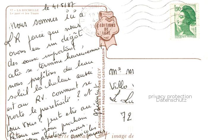 13814571 La Rochelle 17 Le port et les Tours postalisch gelaufen Erhaltung siehe scans [WerneD78] carte postale Wern Katcode 11170017317300