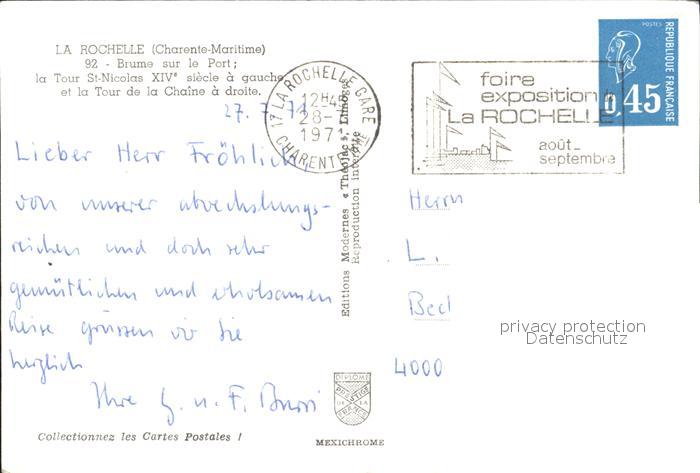 12352794 carte postale La Rochelle Charente-Maritime Brume sur le Port la Tour St Nicolas et la Tour de la Chaine postalisch gelaufen Erhaltung siehe scans KatCode: 11170017317300