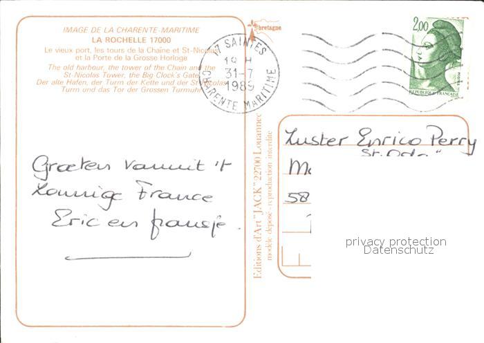 12505414 carte postale La Rochelle Charente-Maritime Hafen Turm Tor postalisch gelaufen Erhaltung siehe scans KatCode: 11170017317300