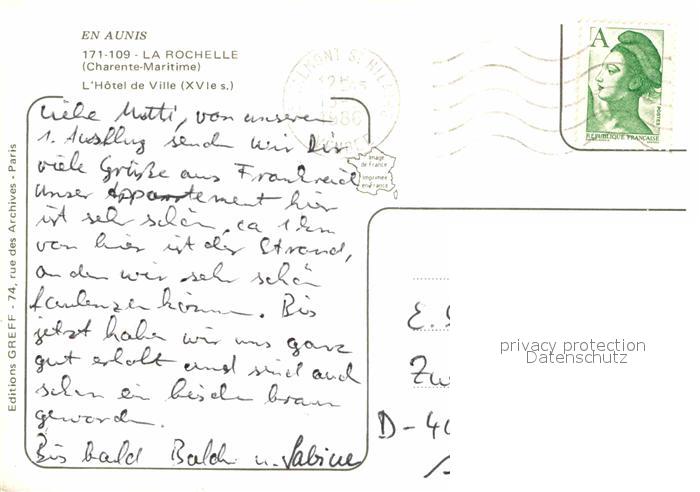 12903811 carte postale La Rochelle Charente-Maritime Hotel de Ville postalisch gelaufen Erhaltung siehe scans [FriedD77] KatCode: 11170017317300
