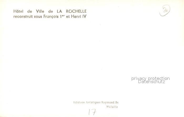 13494987 La Rochelle Charente-Maritime Hotel de Ville reconstruit sous Francois Ier et Henri IV postalisch nicht gelaufen Erhaltung siehe scans [FriedD77] KatCode: 11170017317300