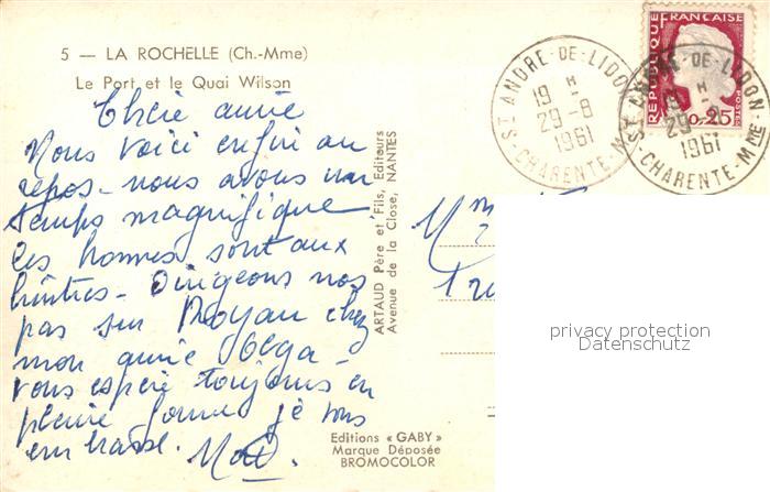 13585864 La Rochelle Charente-Maritime Le port et Quai Wilson Tour postalisch gelaufen Erhaltung siehe scans [FriedD77] carte postale Frie Katcode 11170017317300