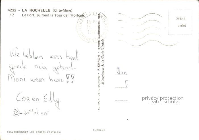 12501142 carte postale La Rochelle Charente-Maritime Port Tour Horloge postalisch gelaufen Erhaltung siehe scans KatCode: 11170017317300