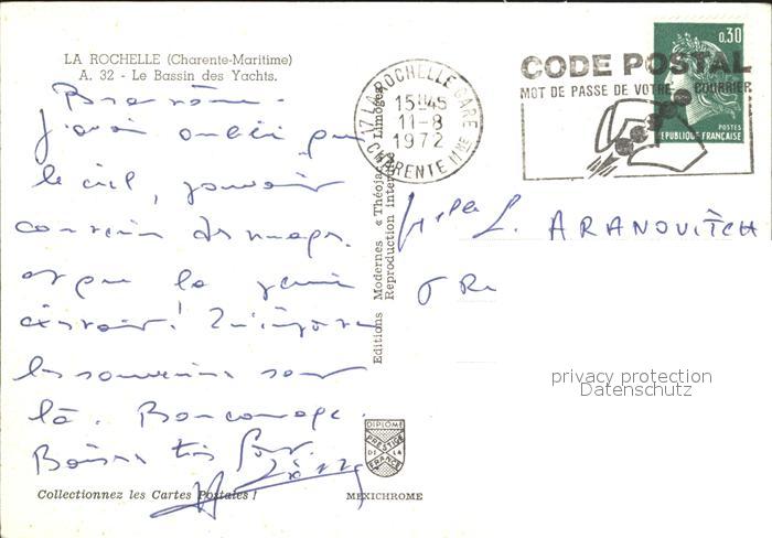 12114194 carte postale La Rochelle Charente-Maritime Yachthafen postalisch gelaufen Erhaltung siehe scans KatCode: 11170017317300