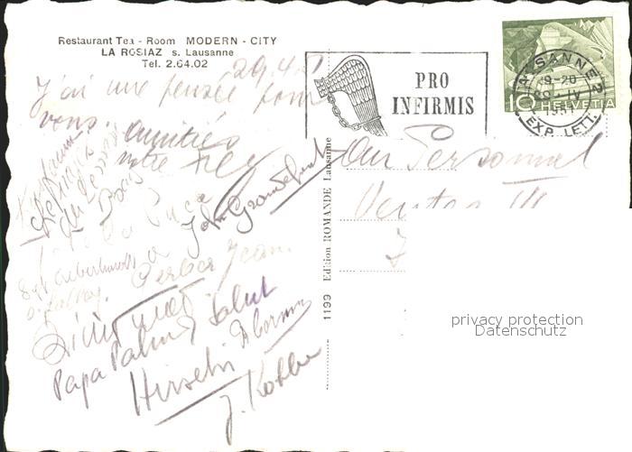 11644692 alte Postkarte La Rosiaz Restaurant Tea Room Modern City Terrasse postalisch gelaufen Erhaltung siehe scans KatCode: 11470240795128