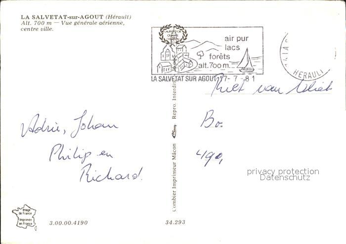 12459038 carte postale La Salvetat-sur-Agout Fliegeraufnahme Zentrum postalisch gelaufen Erhaltung siehe scans KatCode: 11170034134293