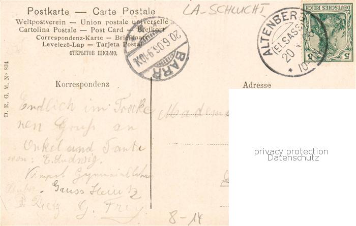 13790911 La Schlucht 88 Gerardmer Vosges Deutsch-franzoesische Grenze a. d. Schlucht postalisch gelaufen Erhaltung siehe scans [LiesaD40] carte postale Lies Katcode 11170088388196