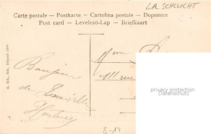 13790913 La Schlucht 88 Gerardmer Vosges Franzoesisch-deutsche Grenze a. d. Strasse v. Gerardmer nach Muenster postalisch gelaufen Erhaltung siehe scans [LiesaD40] carte postale Lies Katcode 11170088388196