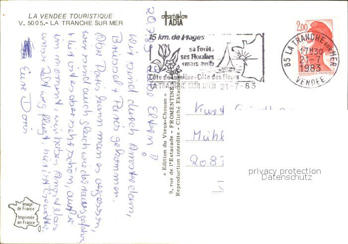 12507347 carte postale La Tranche-sur-Mer Fliegeraufnahme Strand Boote postalisch gelaufen Erhaltung siehe scans KatCode: 11170085385294