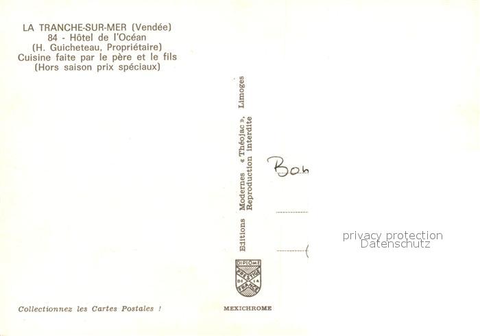 13551317 La Tranche-sur-Mer Hotel de l’Ocean Cuisine faite par le pere et le fils postalisch nicht gelaufen Erhaltung siehe scans [WerneD78] KatCode: 11170085385294