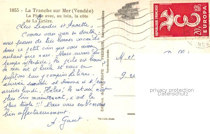 13539699 carte postale La Tranche-sur-Mer Plage postalisch gelaufen Erhaltung siehe scans [LiesaD40] KatCode: 11170085385294
