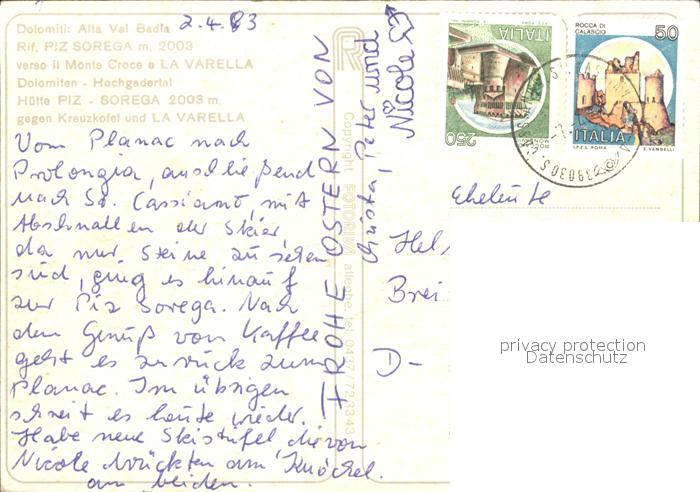 old postcard La Varella Huette Piz Sorega postalisch gelaufen Erhaltung siehe scans